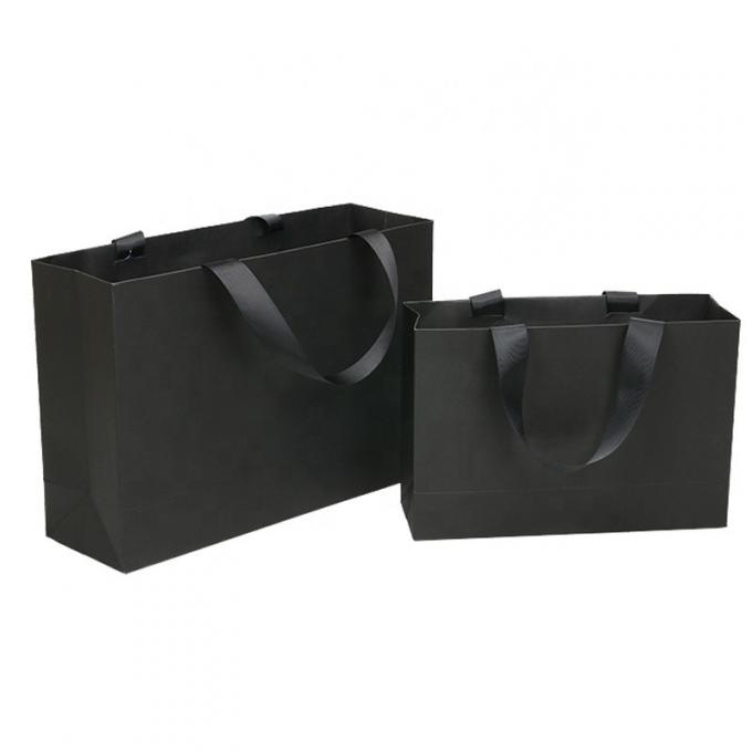 Lüks Siyah Hediye Kağıt Torba Özel Yapılmış Baskılı Logo Takı Ambalaj Kurdele Kolları ile Kraft Alışveriş Kağıt Torba